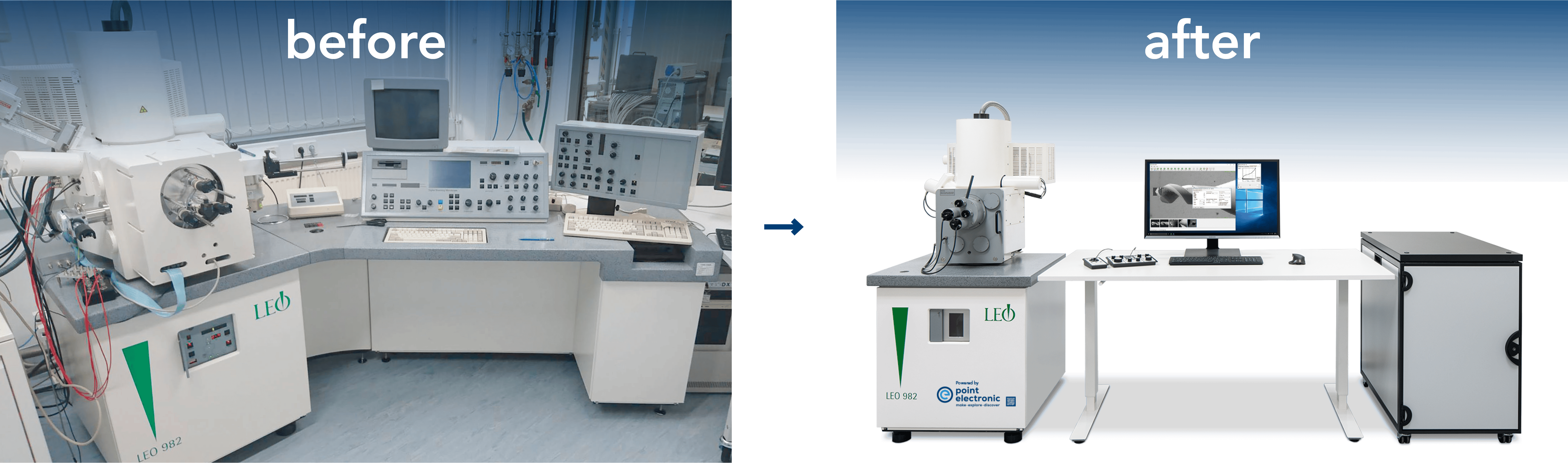 Das point electronic REM Modernisierung bringt Ihr Elektronenmikroskop auf den neuesten Stand von Performance, Techniken und Applikationen und sorgt dafür, dass es auch in den nächsten 10+ Jahren wartbar bleibt. Also: Nicht verschrotten, sondern modernisieren Sie!